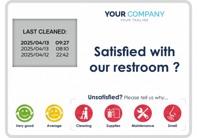 One-tap, contextual feedback allows employees to signal washroom conditions in real time, directly at the point of use.