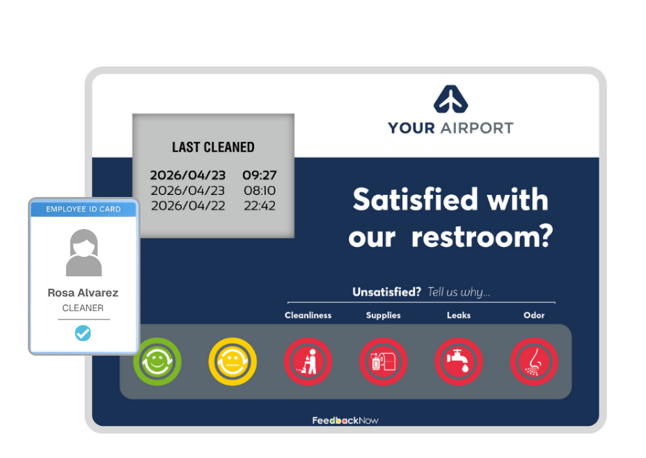 HIPAA-compliant touchless buttons in waiting rooms and discharge areas provide actionable patient insights.